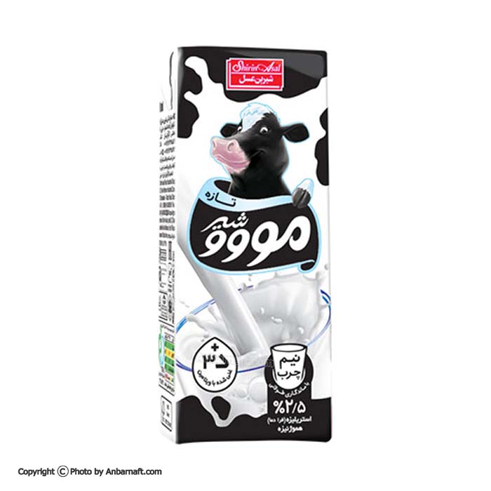شیرنیم چرب مووو شیرین عسل از شیر تازه گاو ( شیر غیرجمع آوری) تولید شده است. در تهیه شیرنیم چرب مووو شیرین عسل هیچگونه مواد افزودنی، نگهدارنده و شیرخشک نیز استفاده نمی شود.